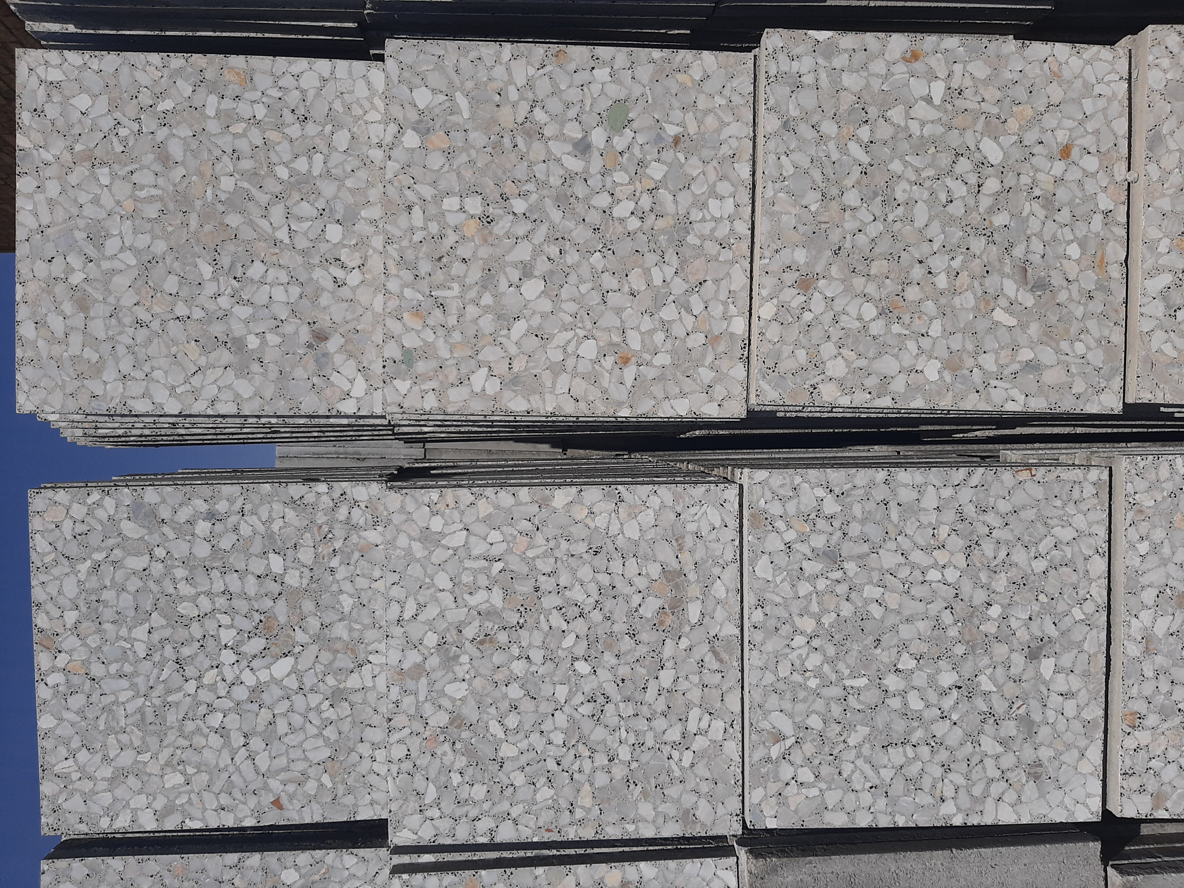 ضخامت ۳ سانت با ابعاد ۴۰٭۴۰ تولیدشده باسیمان شاهرود و سنگ دانه های الیگودرز و آذرشهر و پودرسنگ سوپر سپررستم قم و سیمان سفید بنوید یا ساوه